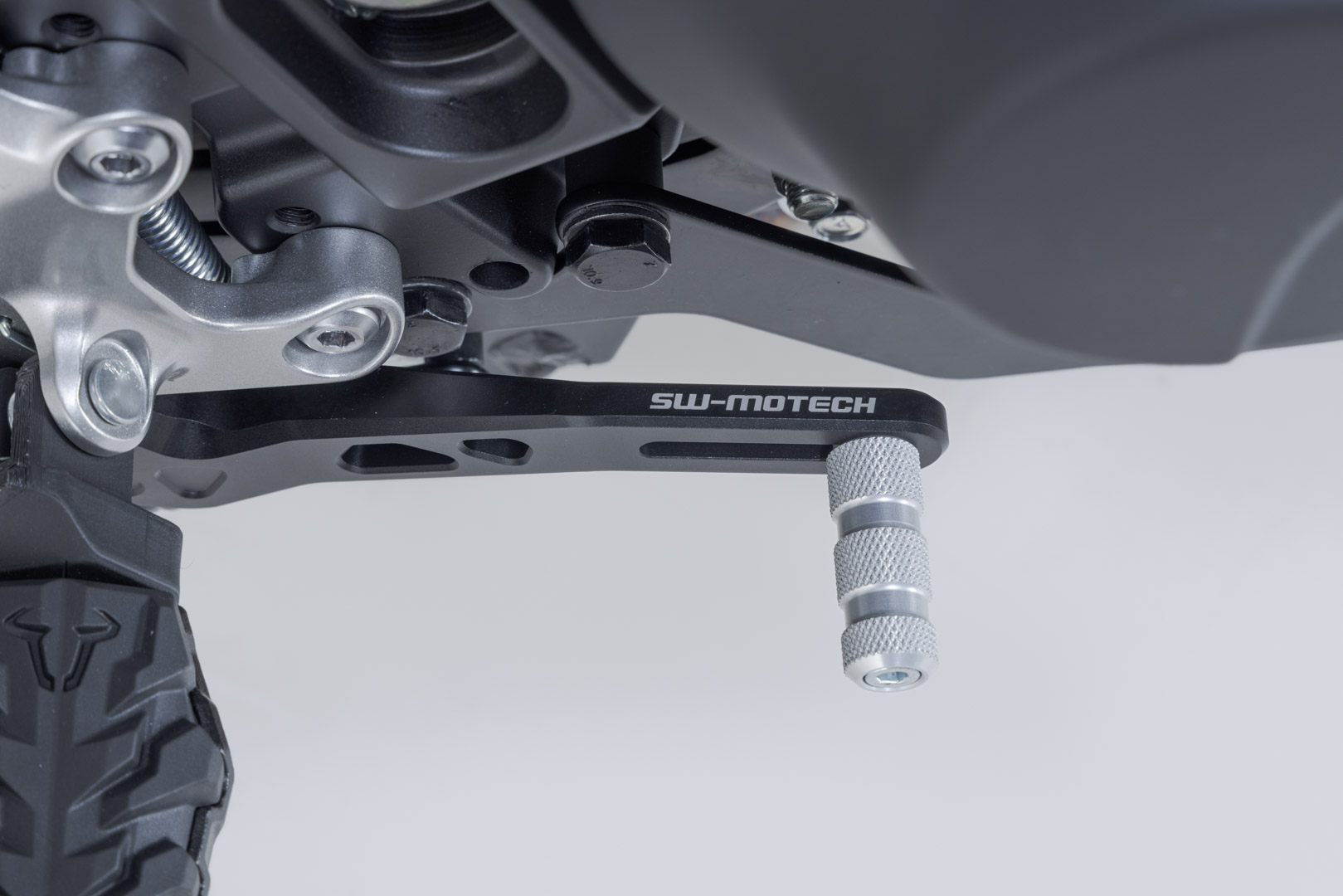 The adjustable brake pedal made of high-quality milled aluminum with HART-COAT® finish allows for optimized handling and control of the brake. The length of the SW-MOTECH brake pedal can be adjusted by 5 cm, so it suits every foot and every driving style. The tread pattern increases grip and provides improved stability for sporty driving and longer tours. With the Adventure tread (sold separately) you can improve brake pedal handling, especially during offroad driving while standing.
